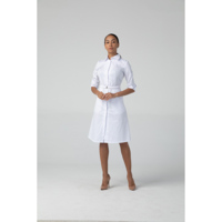 Платье-халат Dr.Nice с рукавом ¾ с отворачивающимися манжетами выполнено в классическом крое на супатной застежке. Модель дополнена двумя карманами в боковых швах и эластичным поясом с пряжкой.