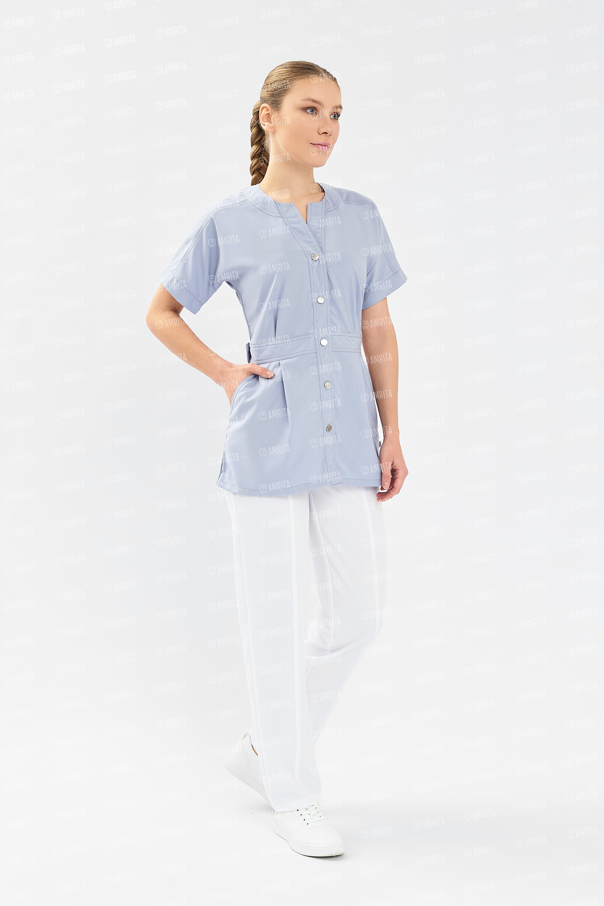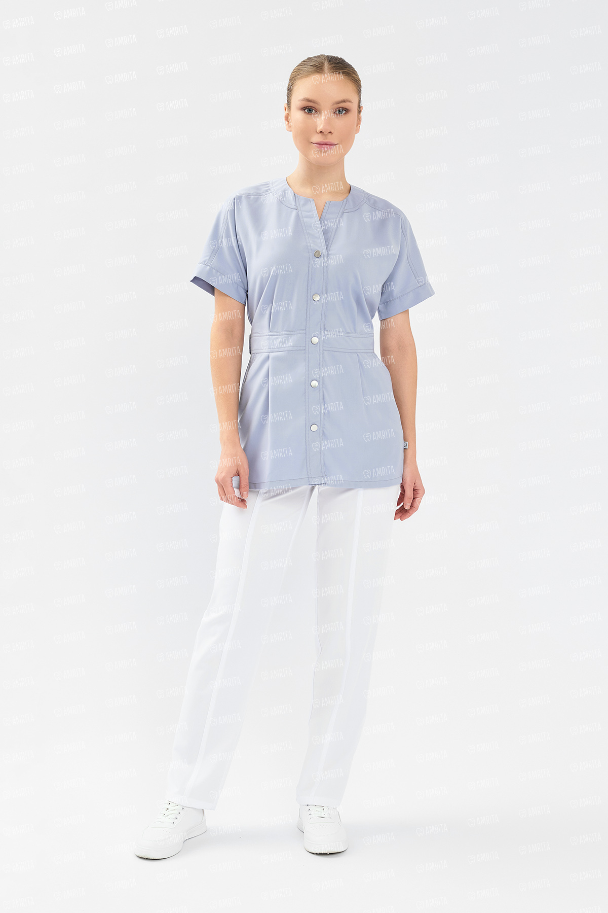- Дизайн: Воротник-стойка с V-образным вырезом, кокетка на плечах