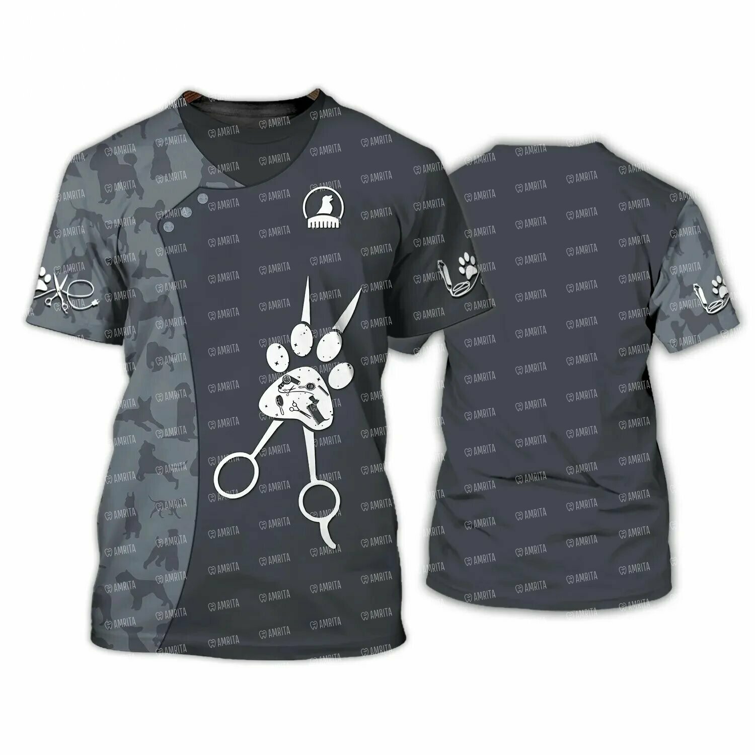Футболка женская, принт "Dog Grooming", серый, L