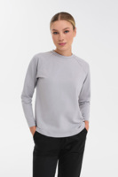 В основе дизайна — расслабленный крой оверсайз с рукавами реглан. Такое конструктивное решение обеспечивает максимальную свободу движений в плечевом поясе и создает мягкую, естественную линию плеча. Лаконичный круглый вырез и отсутствие лишних деталей делают этот лонгслив идеальной базой как для ношения под медицинский халат, так и как самостоятельный элемент гардероба.
