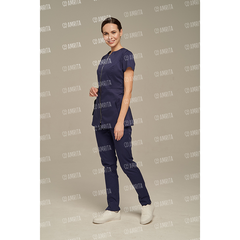 Изделие выполнено из высококачественной смесовой ткани. Приталенный силуэт формируется за счет вертикальных рельефных швов и отрезной линии талии. Такой крой визуально вытягивает фигуру, делая её более стройной и подтянутой, и обеспечивает свободу движений в течение долгой смены.