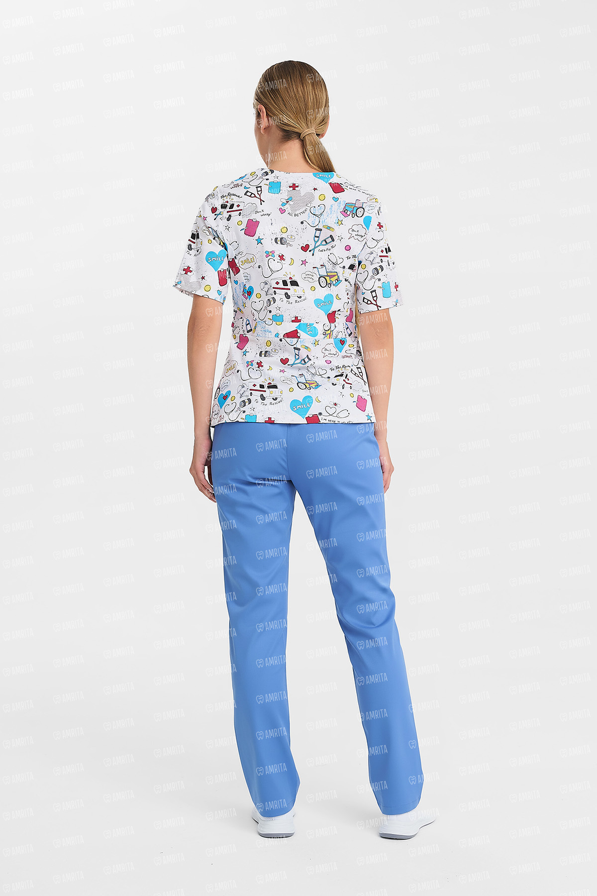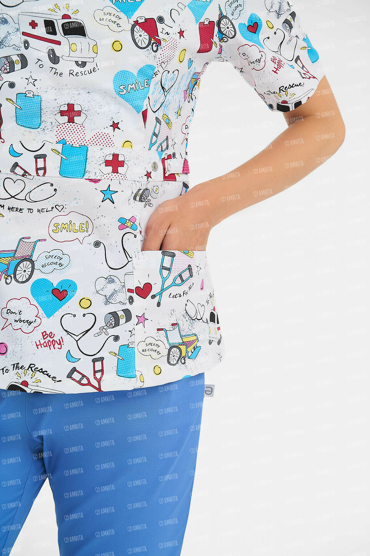 - Дизайн: V-образный вырез, принт "Скорая помощь"