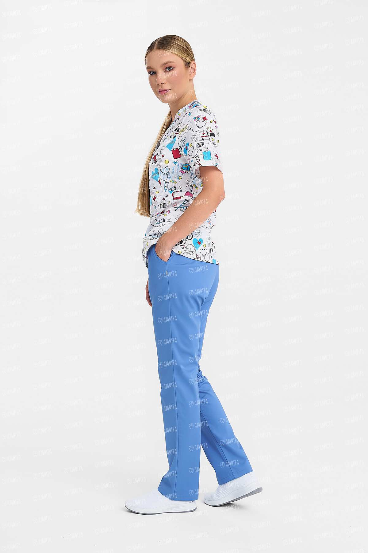 - Дизайн: V-образный вырез, принт "Скорая помощь"