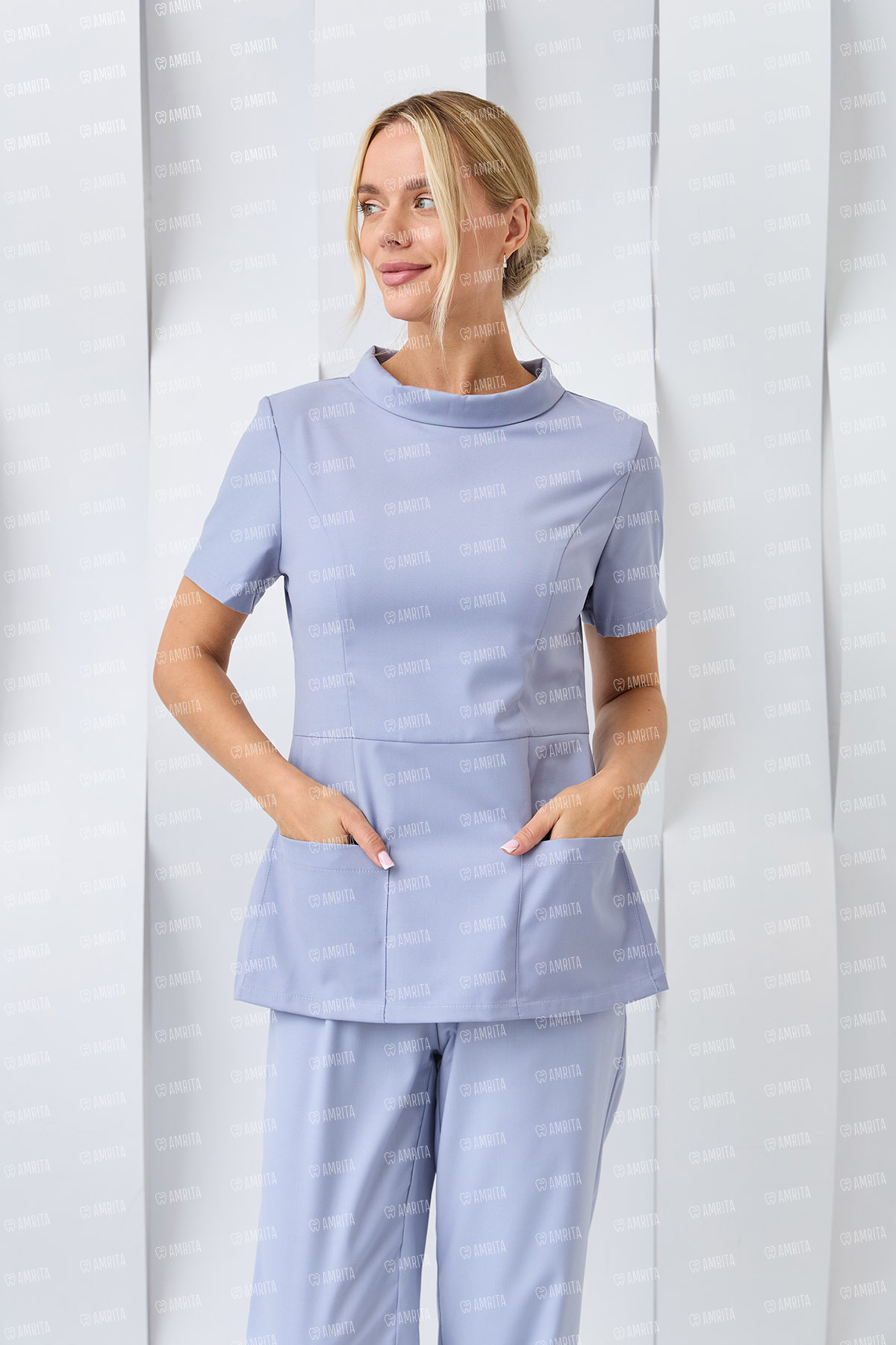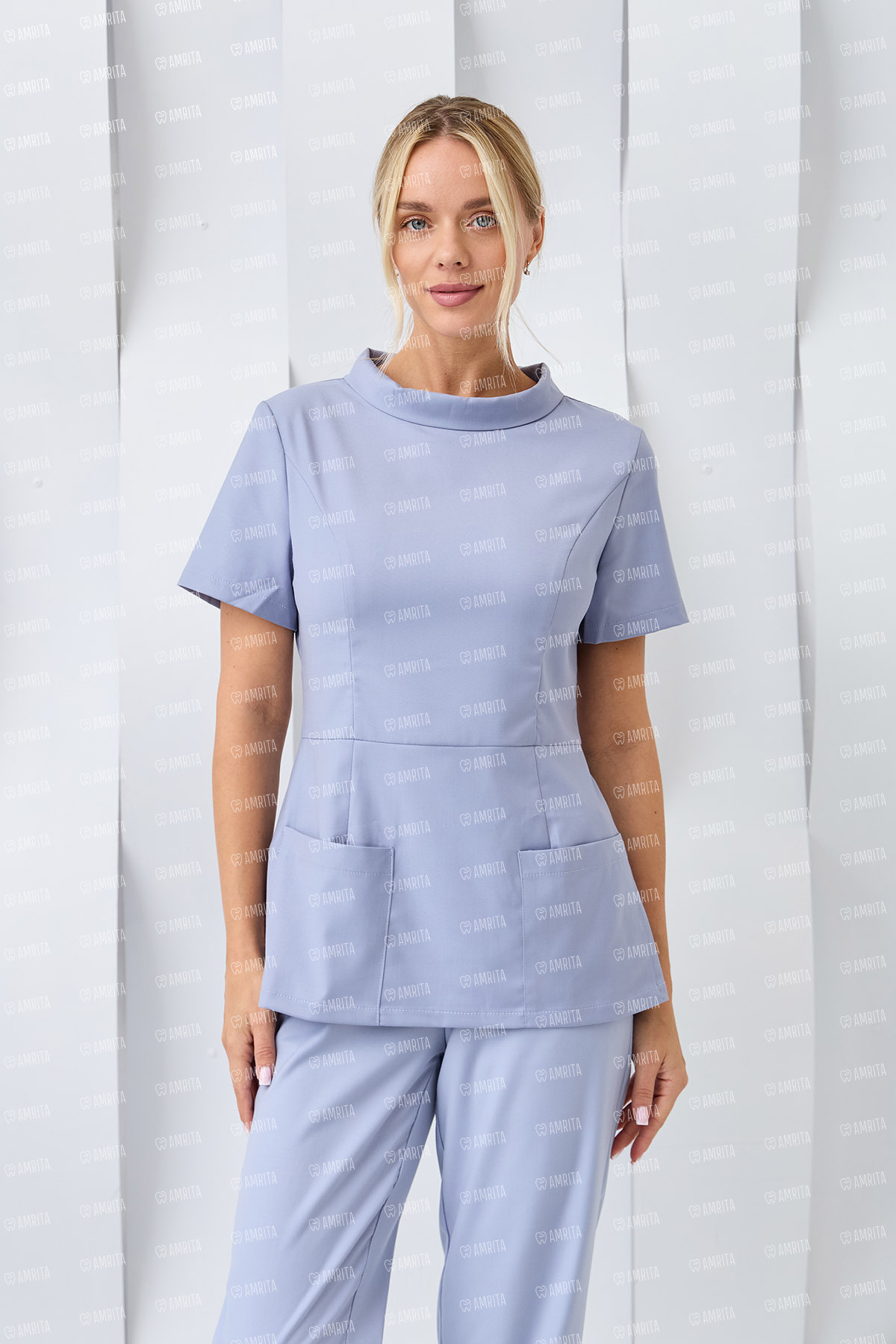 Женская туника из коллекции «Ирэн» от бренда Dr. Nice разработана для специалистов, которые хотят смягчить строгий профессиональный образ нотками элегантности и нежности, не теряя при этом в функциональности и удобстве.