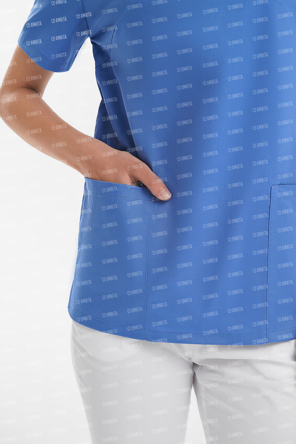 В основе дизайна — полуприлегающий крой, сформированный вертикальными рельефными швами для создания женственного и точного силуэта. Классический V-образный вырез формирует элегантную линию шеи, а три вместительных накладных кармана и разрезы по бокам обеспечивают функциональность и удобство в работе.