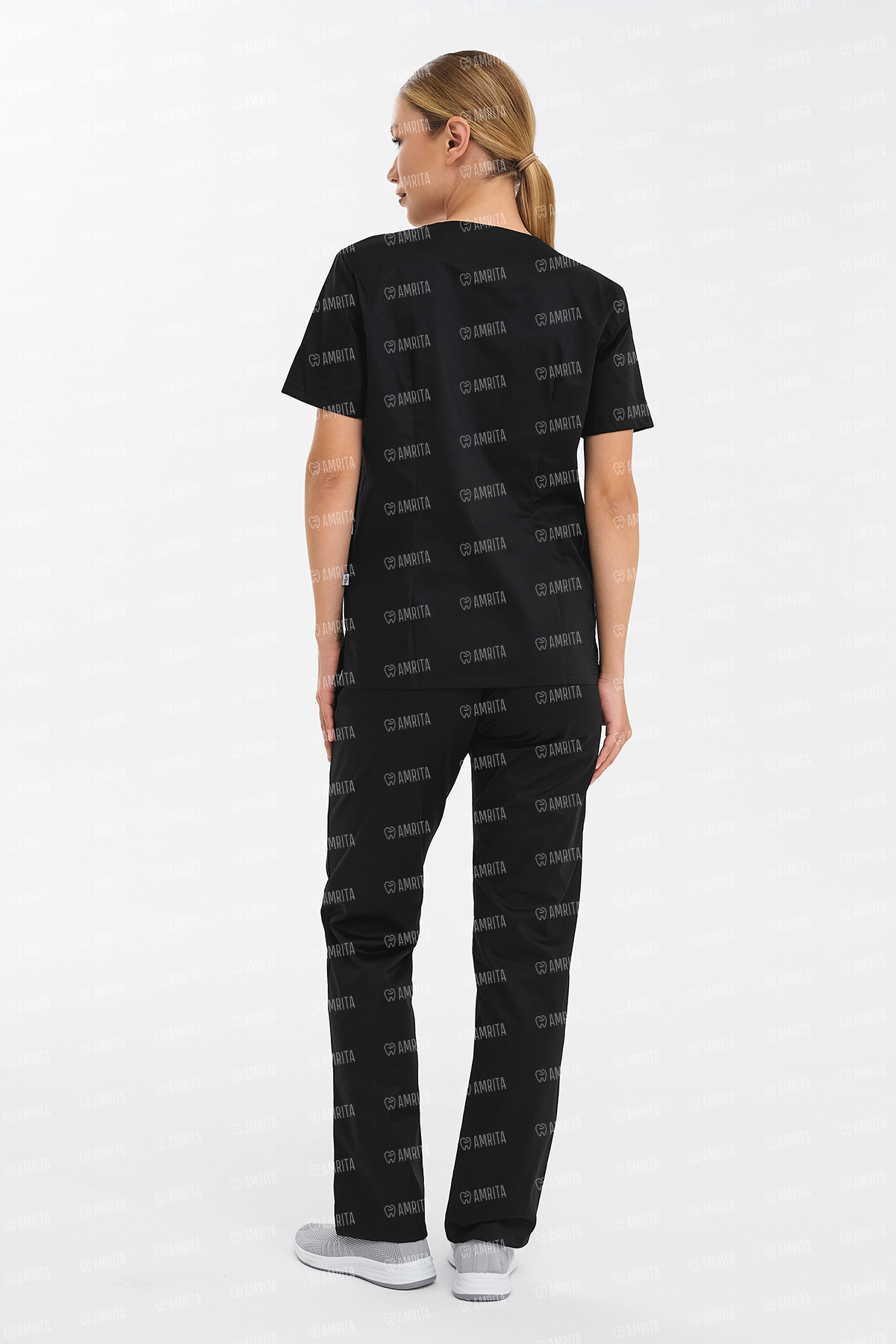 В основе дизайна — полуприлегающий крой, сформированный вертикальными рельефными швами для создания женственного и точного силуэта. Классический V-образный вырез формирует элегантную линию шеи, а три вместительных накладных кармана и разрезы по бокам обеспечивают функциональность и удобство в работе.