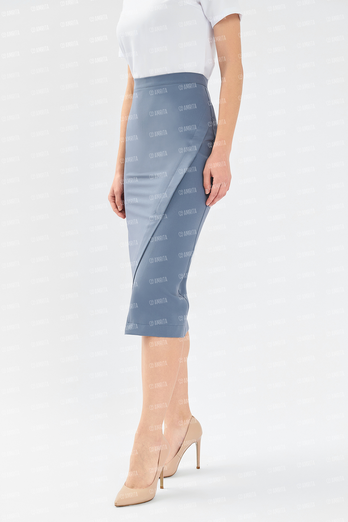 В основе дизайна — прилегающий крой, формирующий элегантный силуэт-карандаш. Ключевым элементом выступает асимметричный диагональный запáх, который добавляет образу динамики и современного звучания. Потайная молния сзади обеспечивает безупречную посадку и сохраняет чистоту линий.