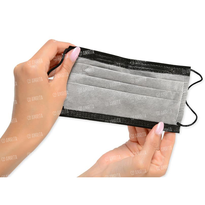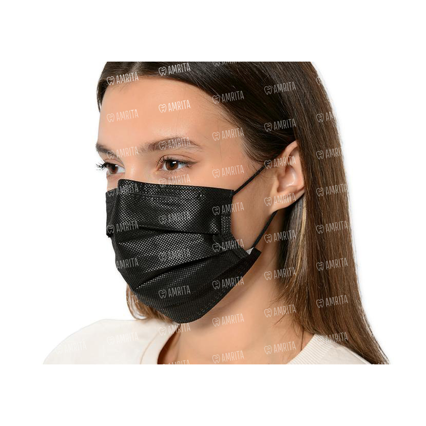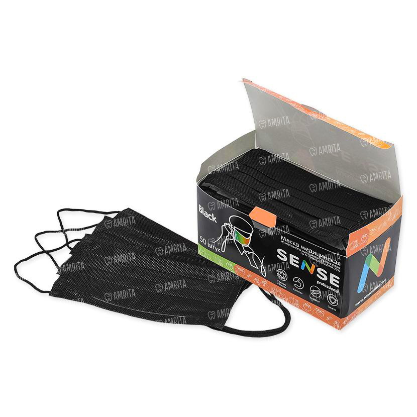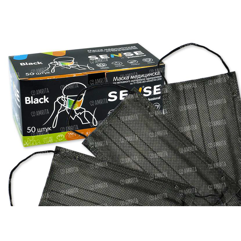 Маска SENSE, трехслойная, на резинках, с носовым фиксатором, черная, 50 шт