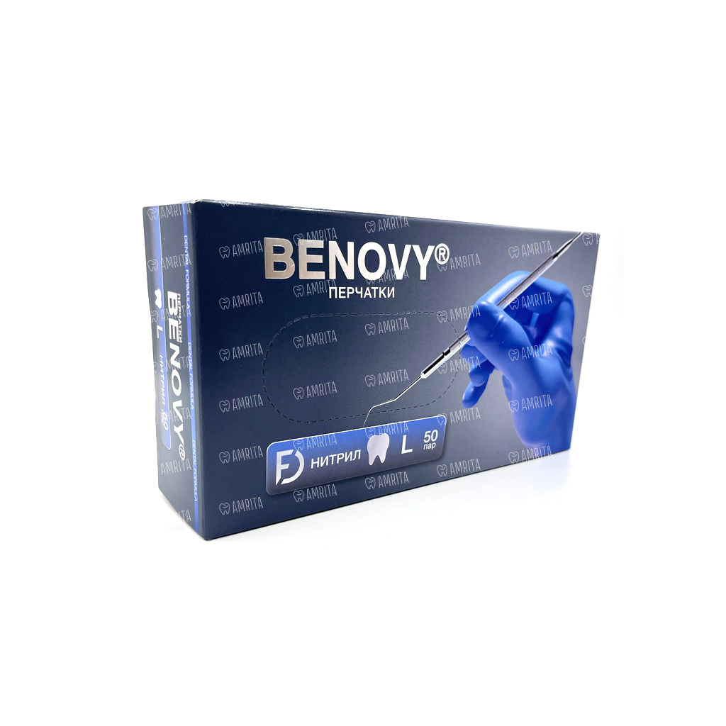 Перчатки одноразовые Benovy Dental Formula, нитриловые, нестерильные, текстурированные, хлорированные, голубые, L, 50 пар