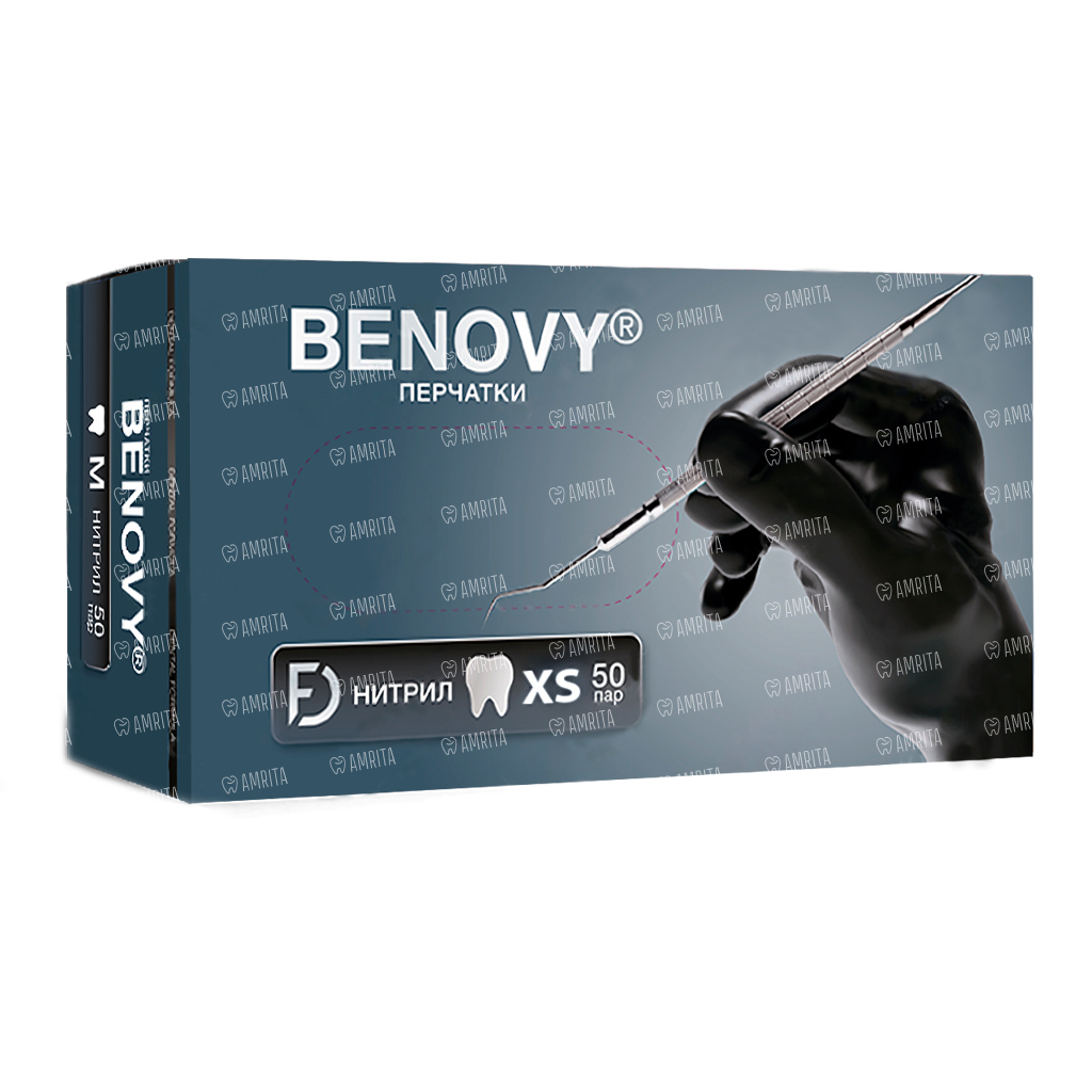 Перчатки одноразовые Benovy Dental Formula, нитриловые, нестерильные, текстурированные, хлорированные черные, XS, 50 пар