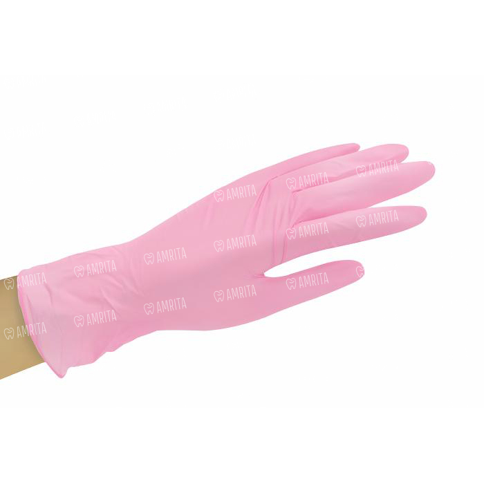 Перчатки нитриловые, текстурированные, розовые, размер S, 100 шт