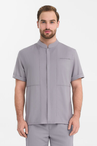 Медицинская мужская рубашка TZ700 выполнена в современном крое с воротником-стойкой и короткими рукавами. Модель с супатной застежкой на молнии и имеет два нагрудных кармана и два боковых.