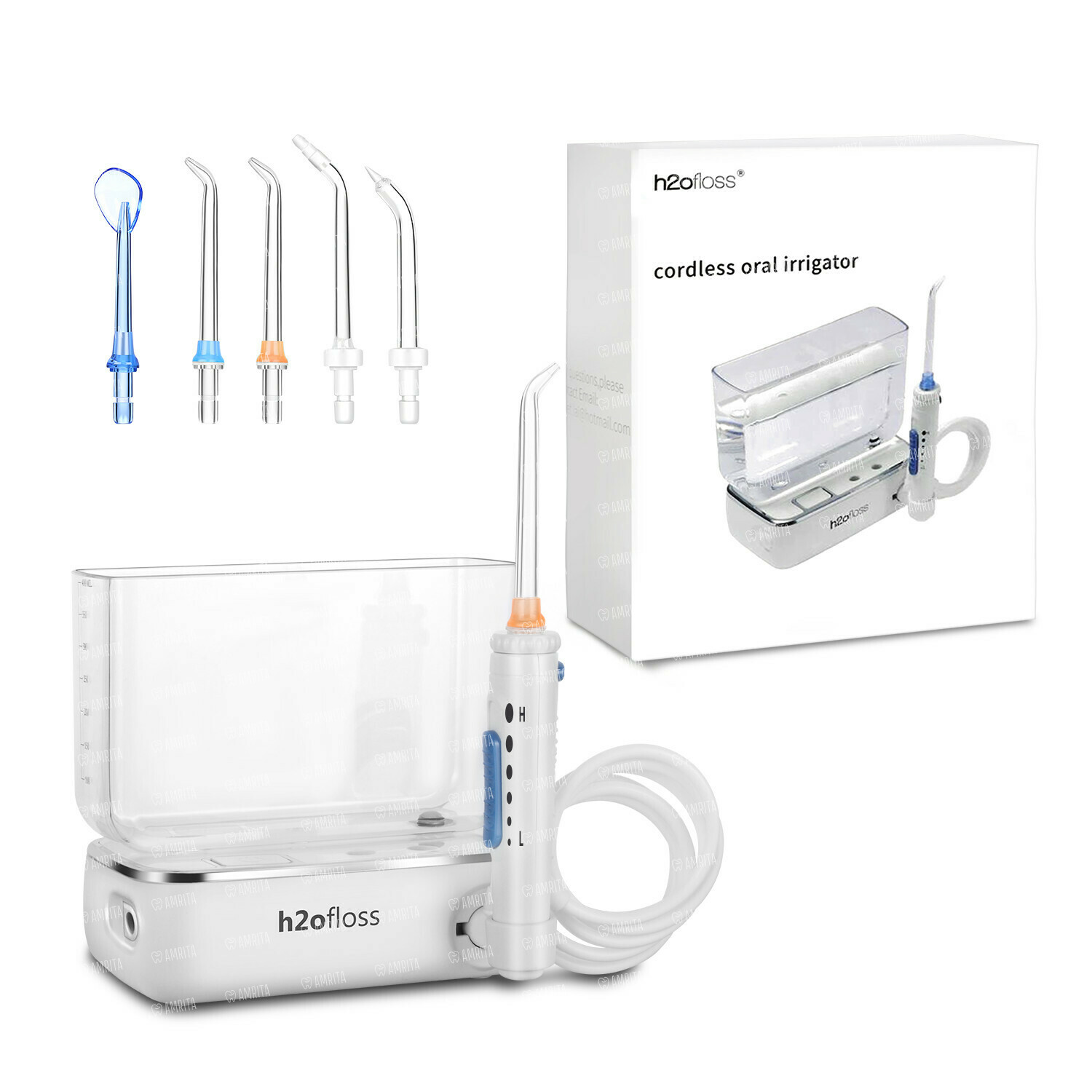 - Уникальной особенностью и главным отличием h2ofloss Premium hf-3 от других портативных ирригаторов является то, что он сконструирован в виде небольшого стационарного ирригатора, который легко собирается за считанные секунды. В то время как другие портативные ирригаторы приходится полностью держать в руке во время процедуры, у h2ofloss Premium hf-3 вы держите только ручку с насадкой, а сам прибор стоит на раковине или полочке.