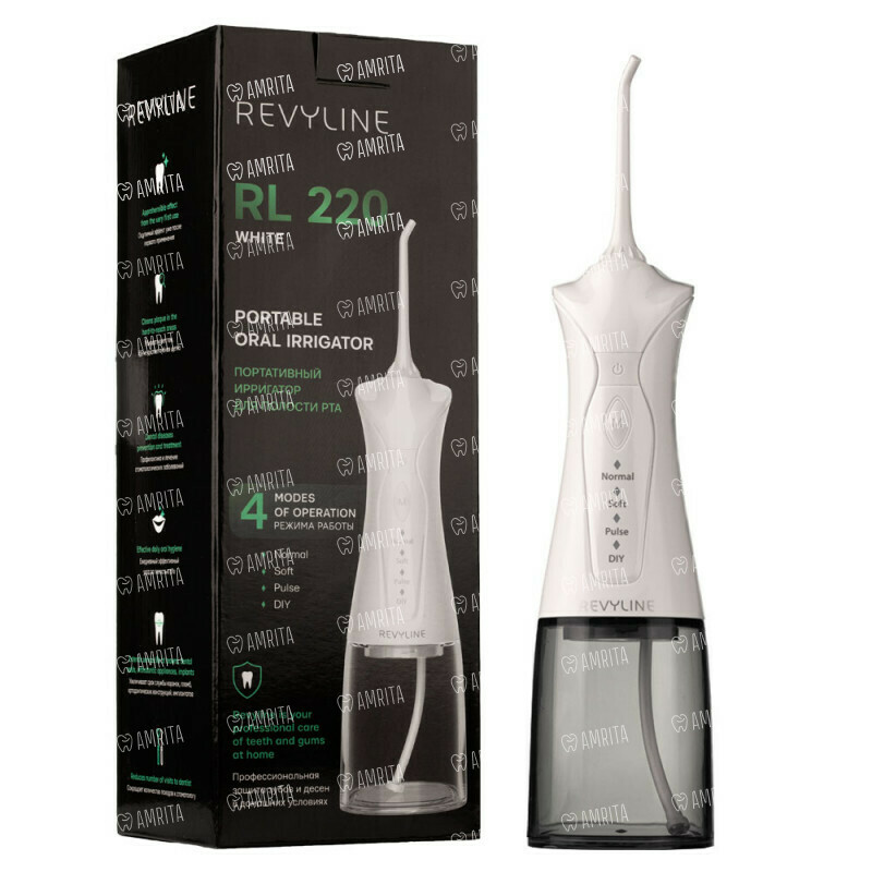 Эта элегантная, привлекающая внимание модель обладает высокими техническими характеристиками. Шкала уровня давления жидкости у портативного ирригатора Revyline RL 220 — 140–900 кПа, что говорит об эффективности ирригационной чистки.
