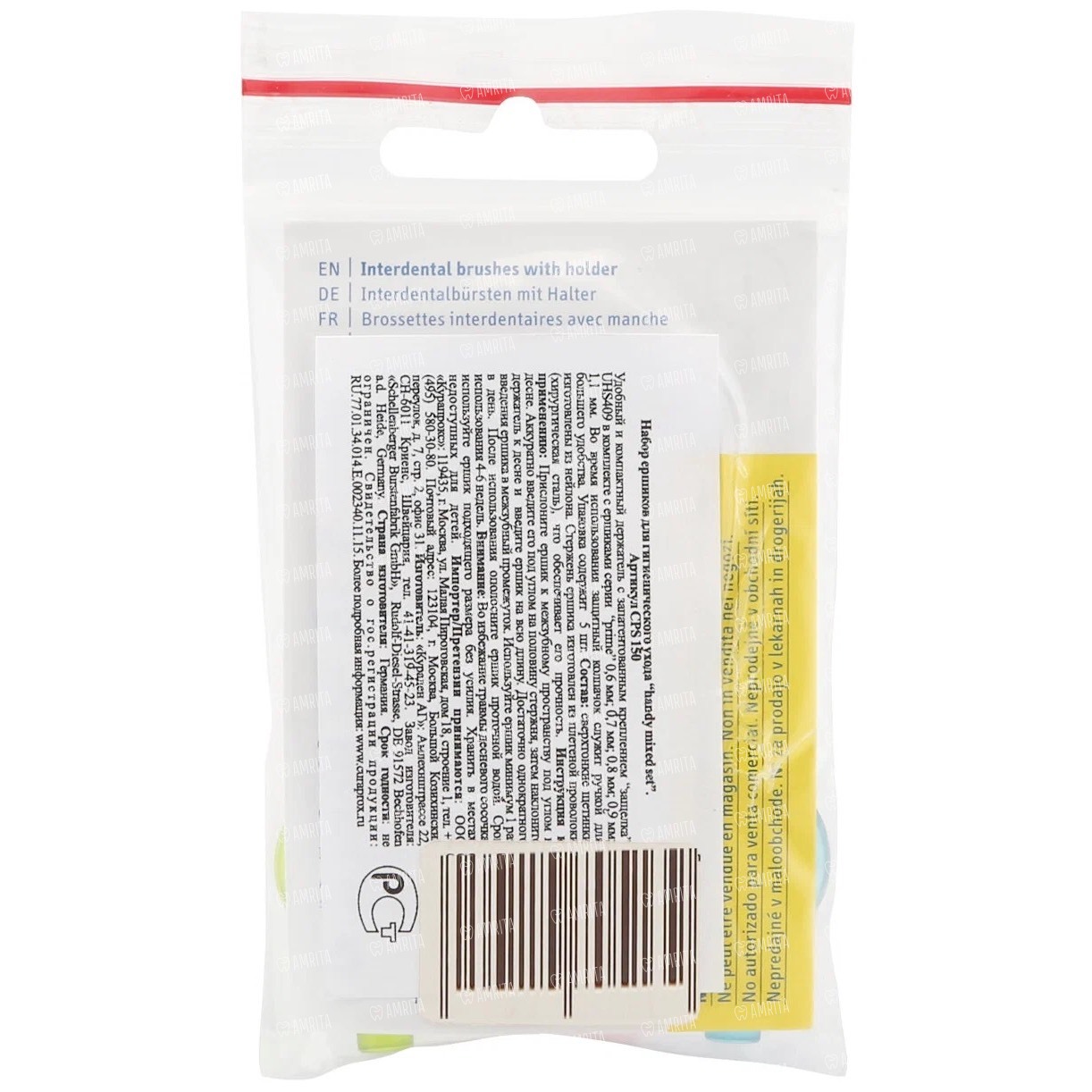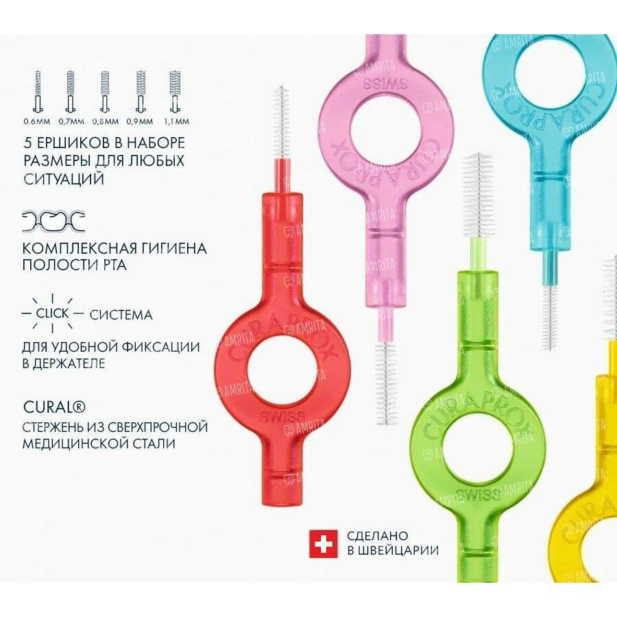 - Для подбора ёршика использовать зонд для измерения межзубных промежутков с цветной кодировкой. Зонд имеет 5 участков с различными цветами, что соответствует разным цветам ершиков серии Prime