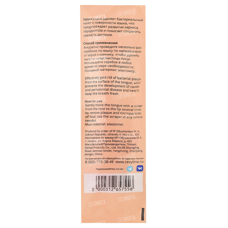 Скребок для языка от Revyline — незаменимый помощник для гигигены полости рта. Скребок быстро и эффективно удаляет налет с поверхности языка, что предупреждает развитие кариеса, пародонтоза и помогает сохранить свежесть дыхания. Очищайте язык движениями от корня к кончику языка, избегая излишнего давления.