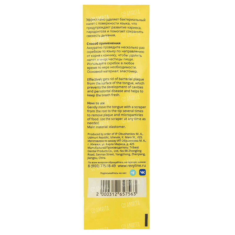 Скребок для языка от Revyline — незаменимый помощник для гигигены полости рта. Скребок быстро и эффективно удаляет налет с поверхности языка, что предупреждает развитие кариеса, пародонтоза и помогает сохранить свежесть дыхания. Очищайте язык движениями от корня к кончику языка, избегая излишнего давления.