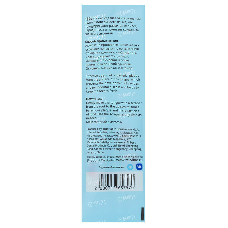 Скребок для языка от Revyline — незаменимый помощник для гигигены полости рта. Скребок быстро и эффективно удаляет налет с поверхности языка, что предупреждает развитие кариеса, пародонтоза и помогает сохранить свежесть дыхания. Очищайте язык движениями от корня к кончику языка, избегая излишнего давления.