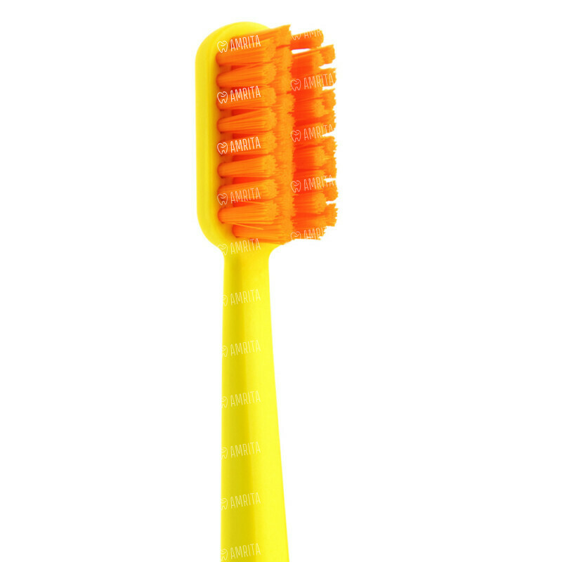 - Благодаря особому профилю щетины щетка эффективно очищает брекет-системы