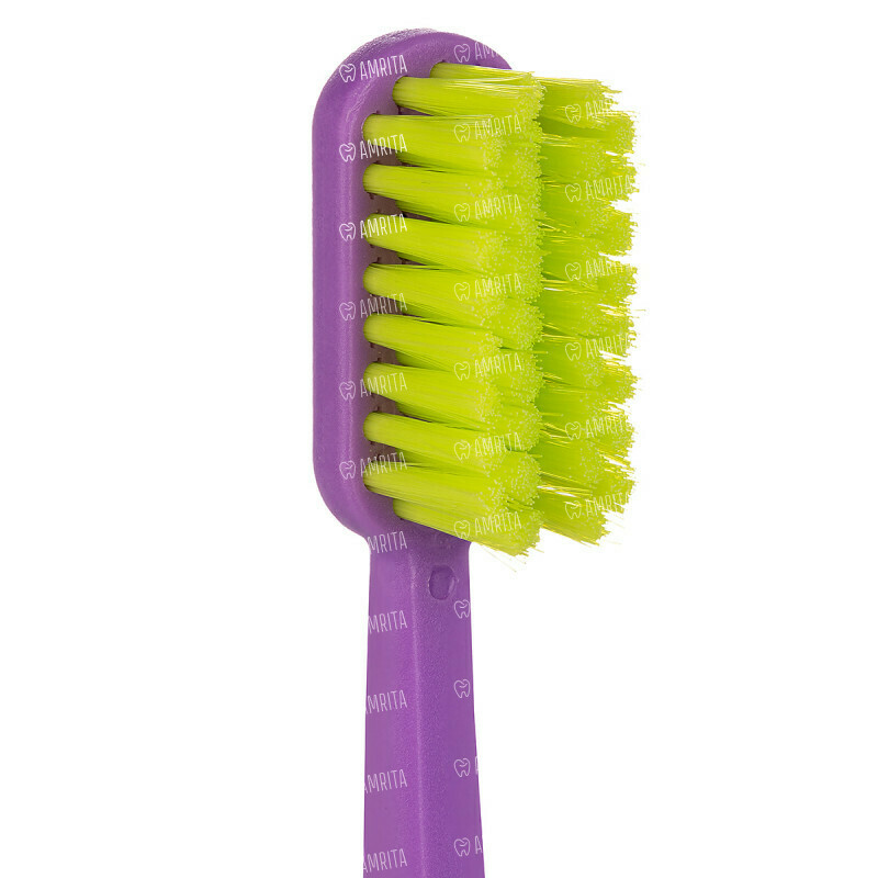 - Благодаря особому профилю щетины щетка эффективно очищает брекет-системы