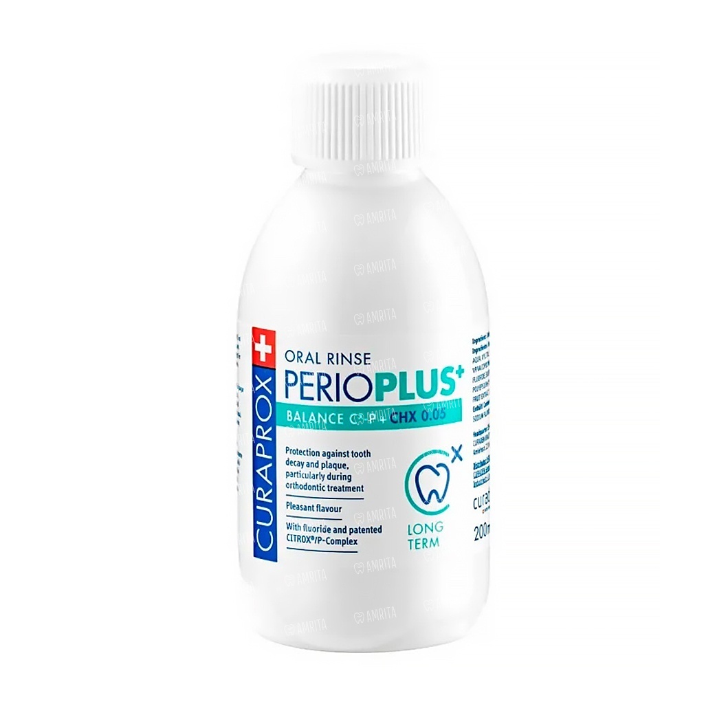 Ополаскиватель Curaprox Perio Plus Balance с хлоргексидином 0.05% предназначен для борьбы с бактериальным налетом и профилактики заболеваний полости рта. Благодаря комбинации хлоргексидина и CITROX-комплекса (натуральный антисептик из экстракта горького апельсина), средство обеспечивает надежную антимикробную защиту. Ополаскиватель образует защитную пленку на поверхности зубов и слизистой, повышая эффективность борьбы с налетом, при этом не изменяет цвет эмали и не окрашивает зубы. Рекомендован для профилактики кариеса и гингивита у взрослых.