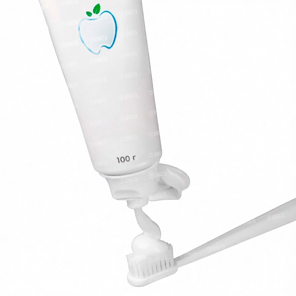 Нанесите на зубную щетку маленькую горошину зубной пасты. Чистите зубы в течение 2 минут. Прополощите рот водой.