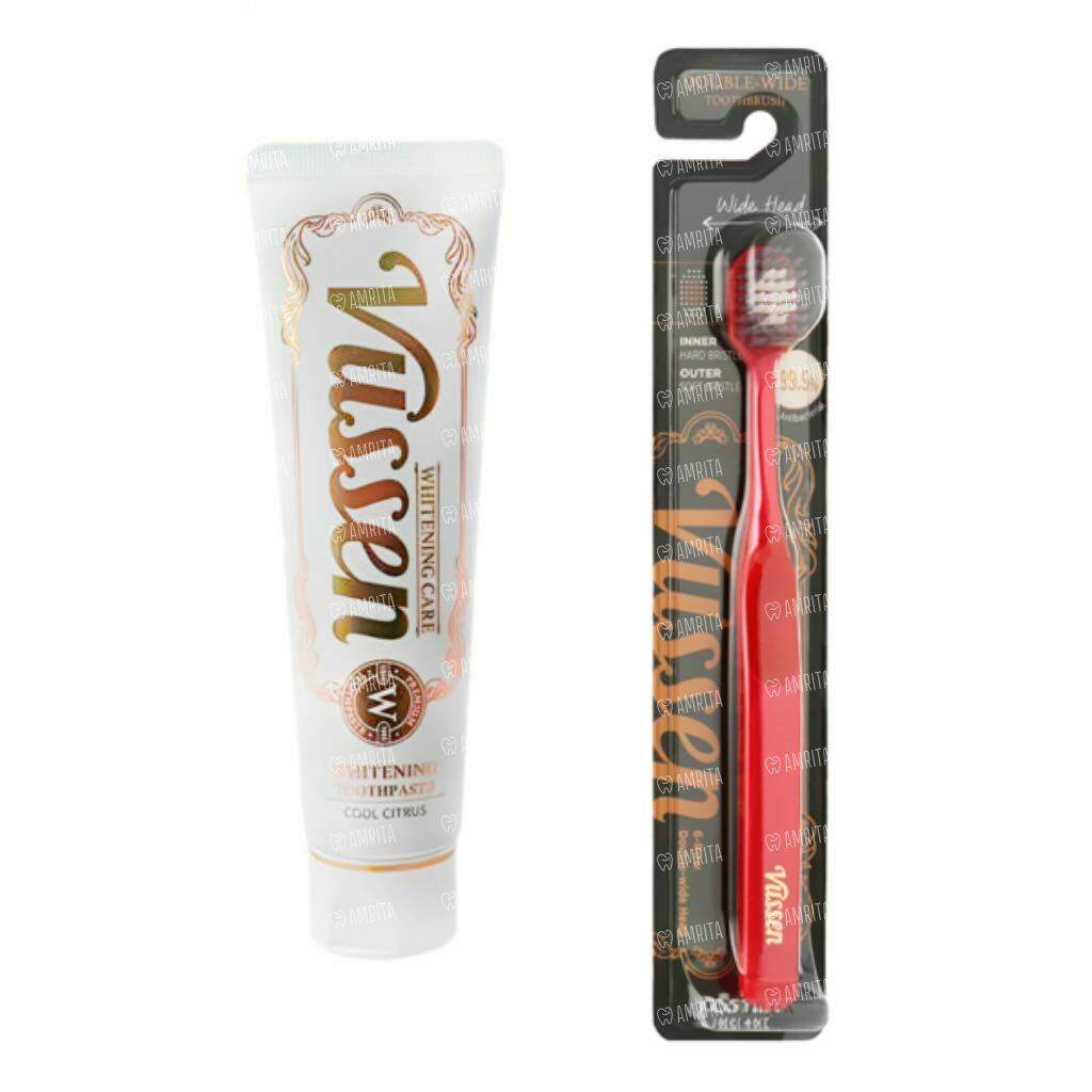 Комплект зубная паста Vussen W + щетка Vussen "Double-Wide", красная