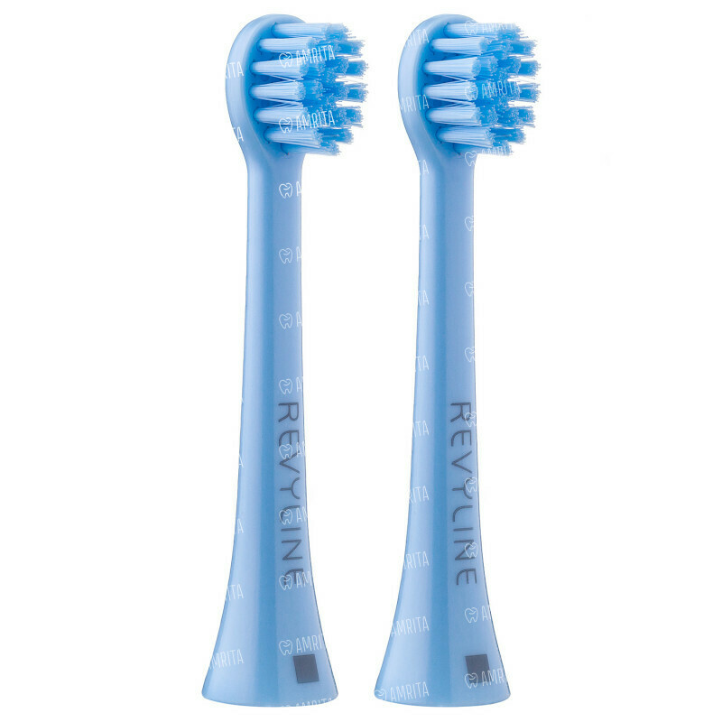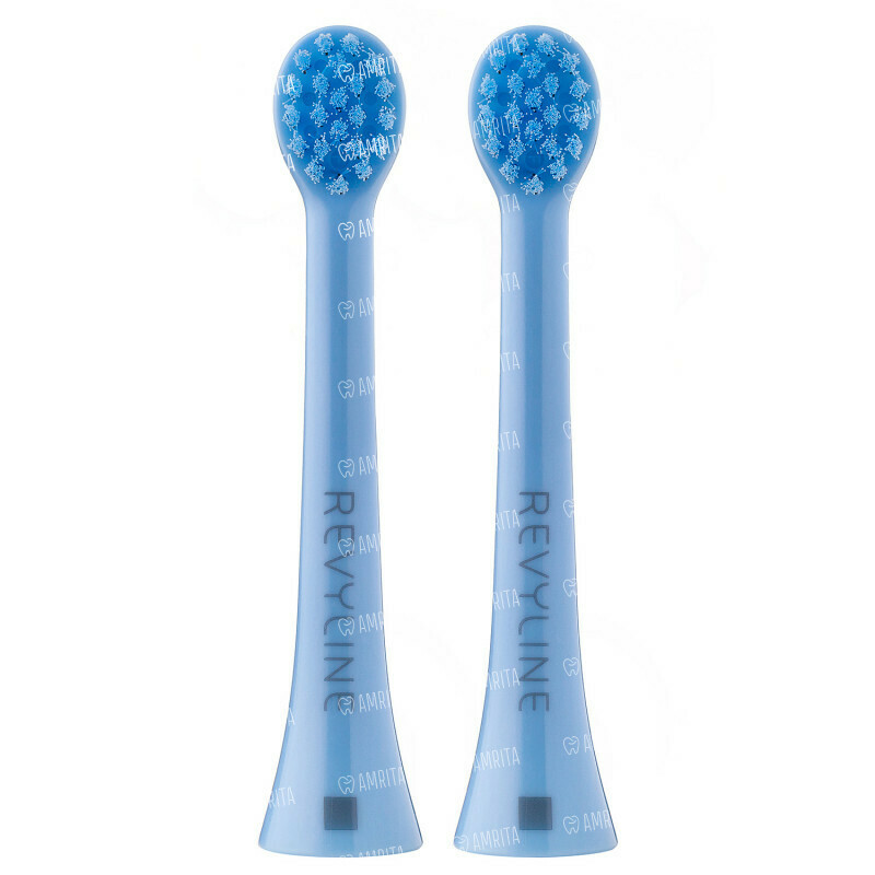 В комплект Revyline RL 020 входит две насадки голубого цвета. Они понадобятся после того, как их аналоги, входящие в комплект детской электрической зубной щётки Revyline RL 020 Kids, придут в негодность или возникнет необходимость расширить число пользователей.