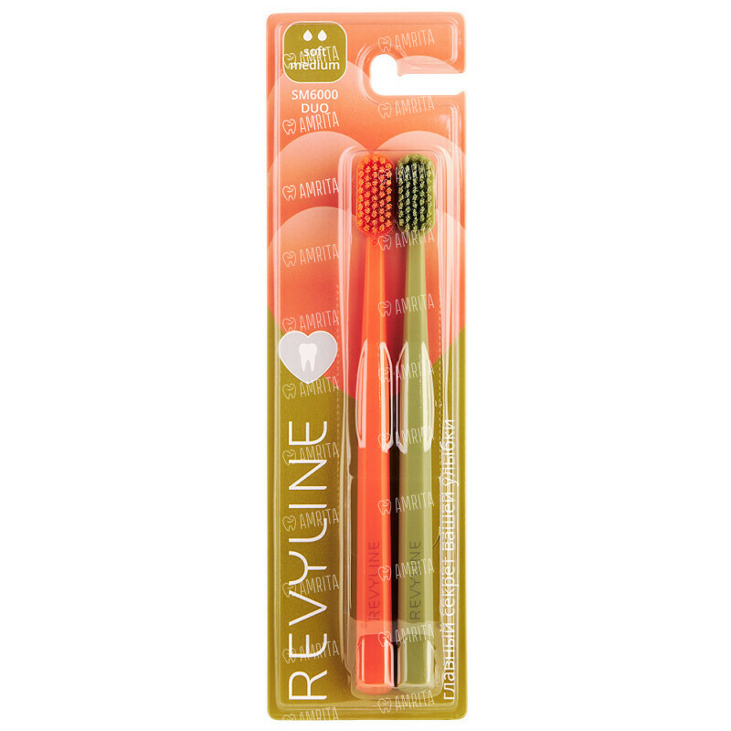 Зубная щётка Revyline SM6000 Duo, мануальная, оранжевая/хаки, 2 шт