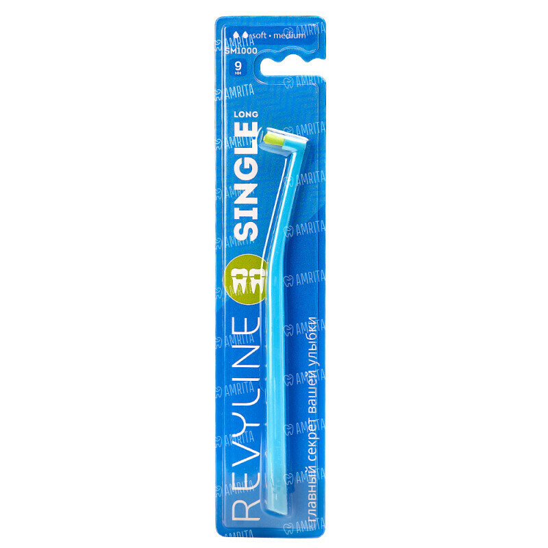 Зубная щётка Revyline SM1000 Single Long, монопучковая, голубая с салатовой щетиной