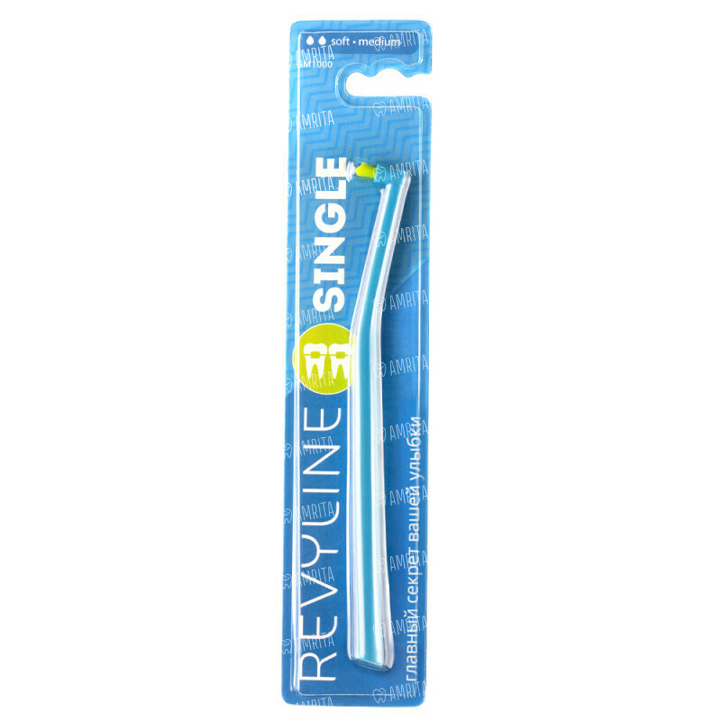 Зубная щётка Revyline SM1000 Single, монопучковая, голубая с салатовой щетиной