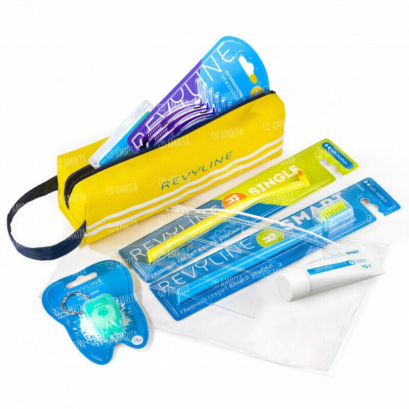 Профилактический набор Revyline — это самые необходимые аксессуары для ухода за полостью рта, собранные в компактном дорожном пенале из водоотталкивающей ткани. Удобно брать с собой в дорогу, обеспечивая качественную гигиену, где бы вы ни были.