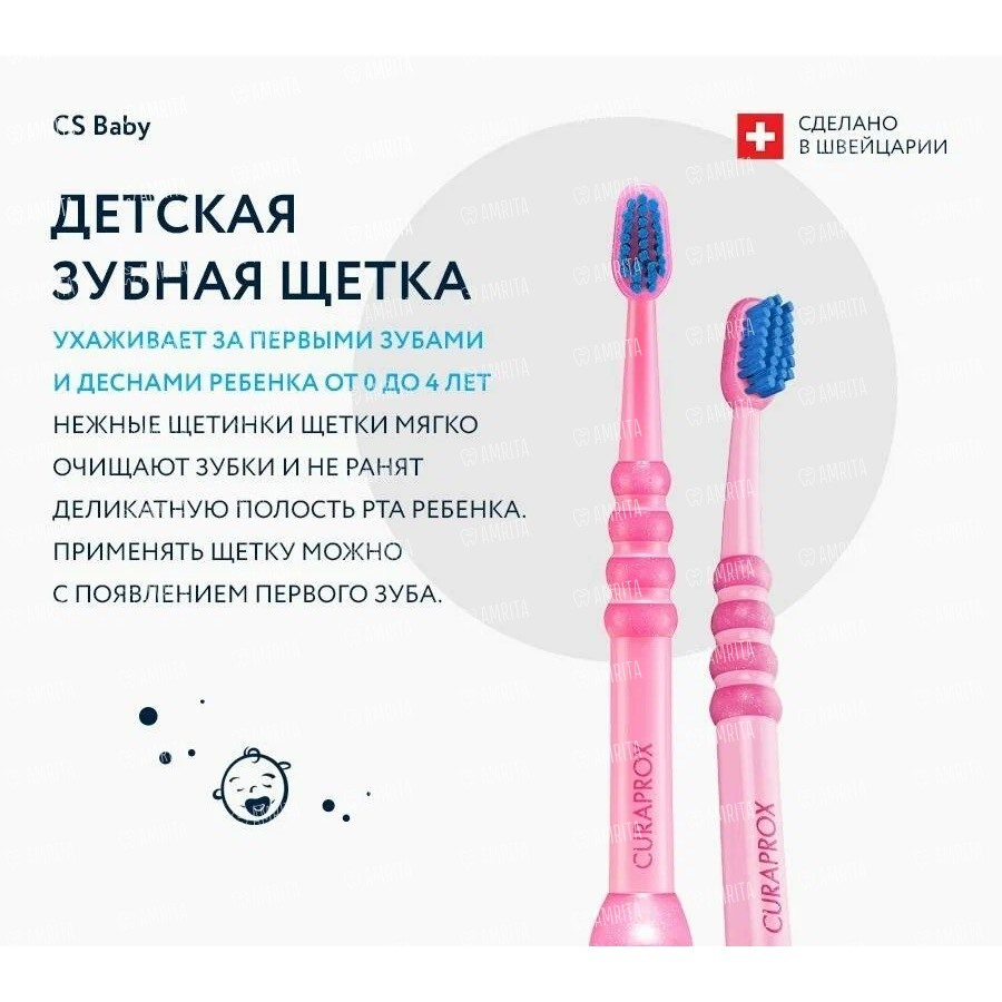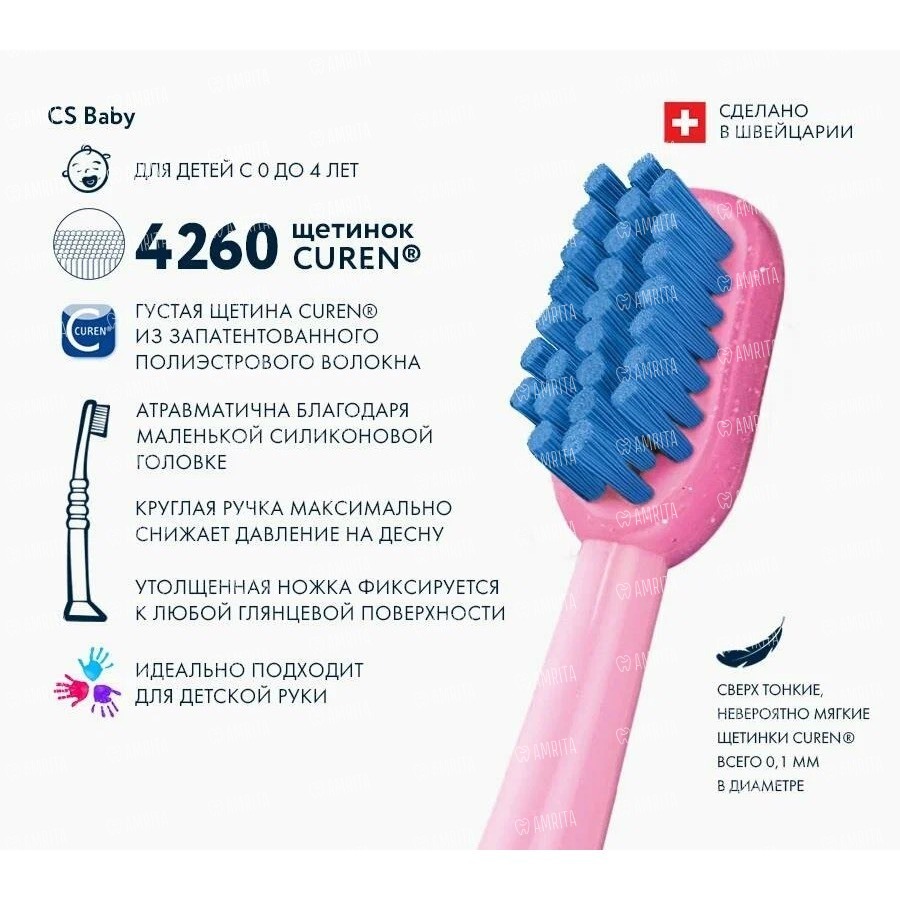 Детская зубная щетка CS Baby c гуммированной ручкой, голубой