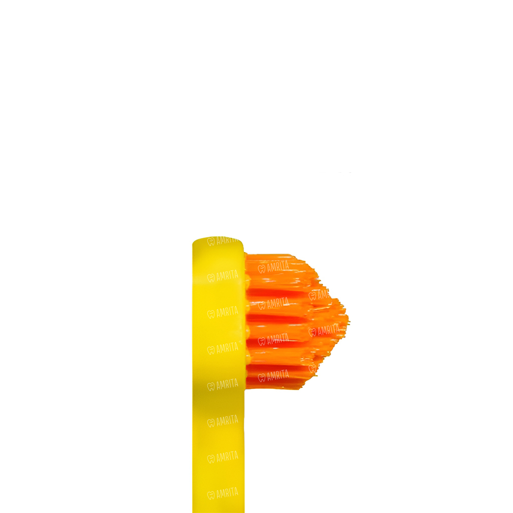 Зубная щетка Splash brush 120 желтого цвета с очень мягкой щетиной, диаметром щетинок 0,12 мм, предназначена для очистки зубов, брекетов и имплантатов. Щетка достает до всех участков зуба, включая заднюю стенку.