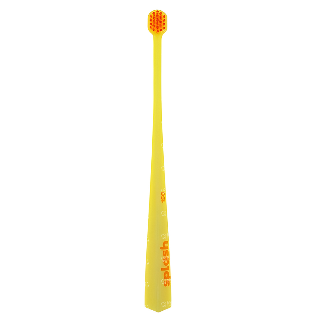Зубная щетка Splash brush 150 желтого цвета с мягкой щетиной, диаметром щетинок 0,15 мм, предназначена для очистки зубов, брекетов и имплантатов. Щетка достает до всех участков зуба, включая заднюю стенку.