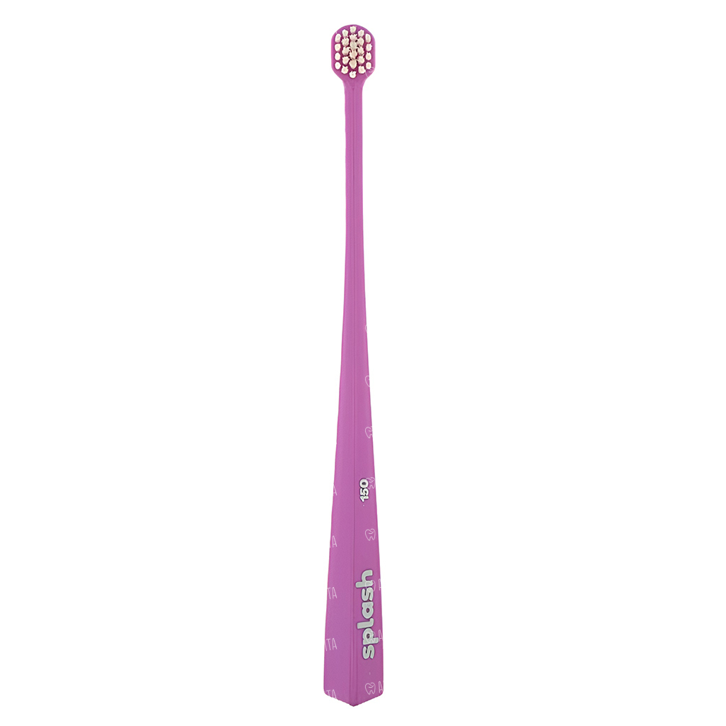 Зубная щетка Splash brush 150 цвета фуксии с мягкой щетиной, диаметром щетинок 0,15 мм, предназначена для очистки зубов, брекетов и имплантатов. Щетка достает до всех участков зуба, включая заднюю стенку.