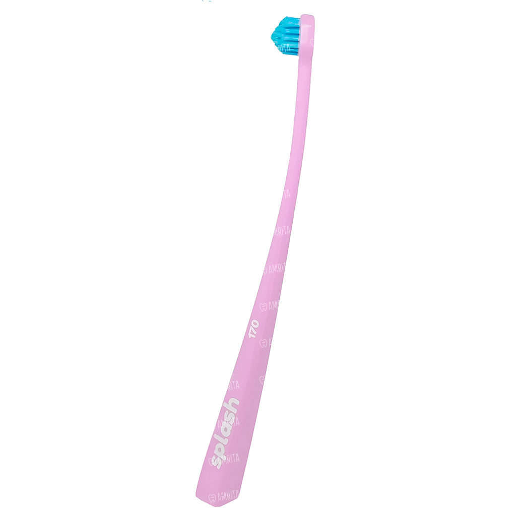 Зубная щетка Splash brush 170 розового цвета с щетиной средней жесткости, диаметром щетинок 0,17 мм, предназначена для очистки зубов, брекетов и имплантатов. Щетка достает до всех участков зуба, включая заднюю стенку.