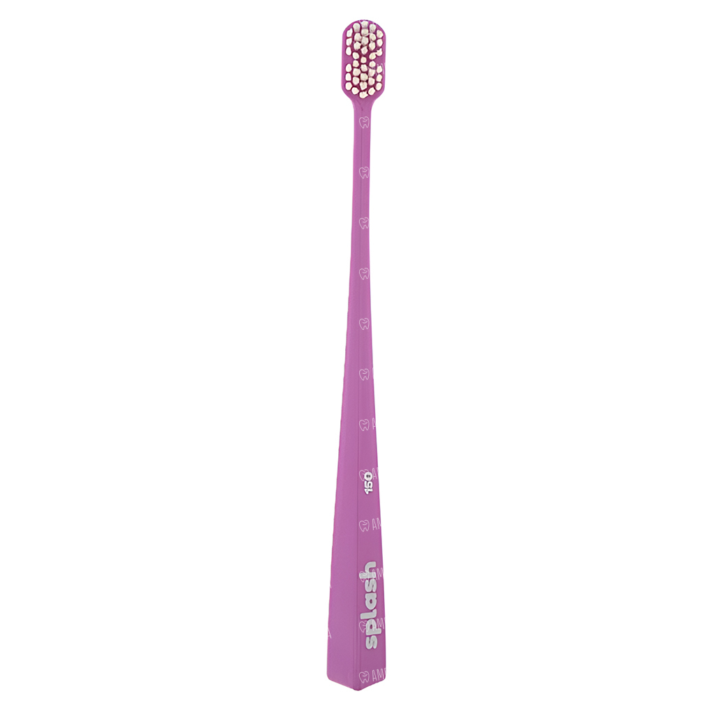 Зубная щетка Splash brush 150 цвета фуксии с мягкой щетиной, диаметром щетинок 0,15 мм, предназначена для очистки зубов, брекетов и имплантатов. Щетка достает до всех участков зуба, включая заднюю стенку.