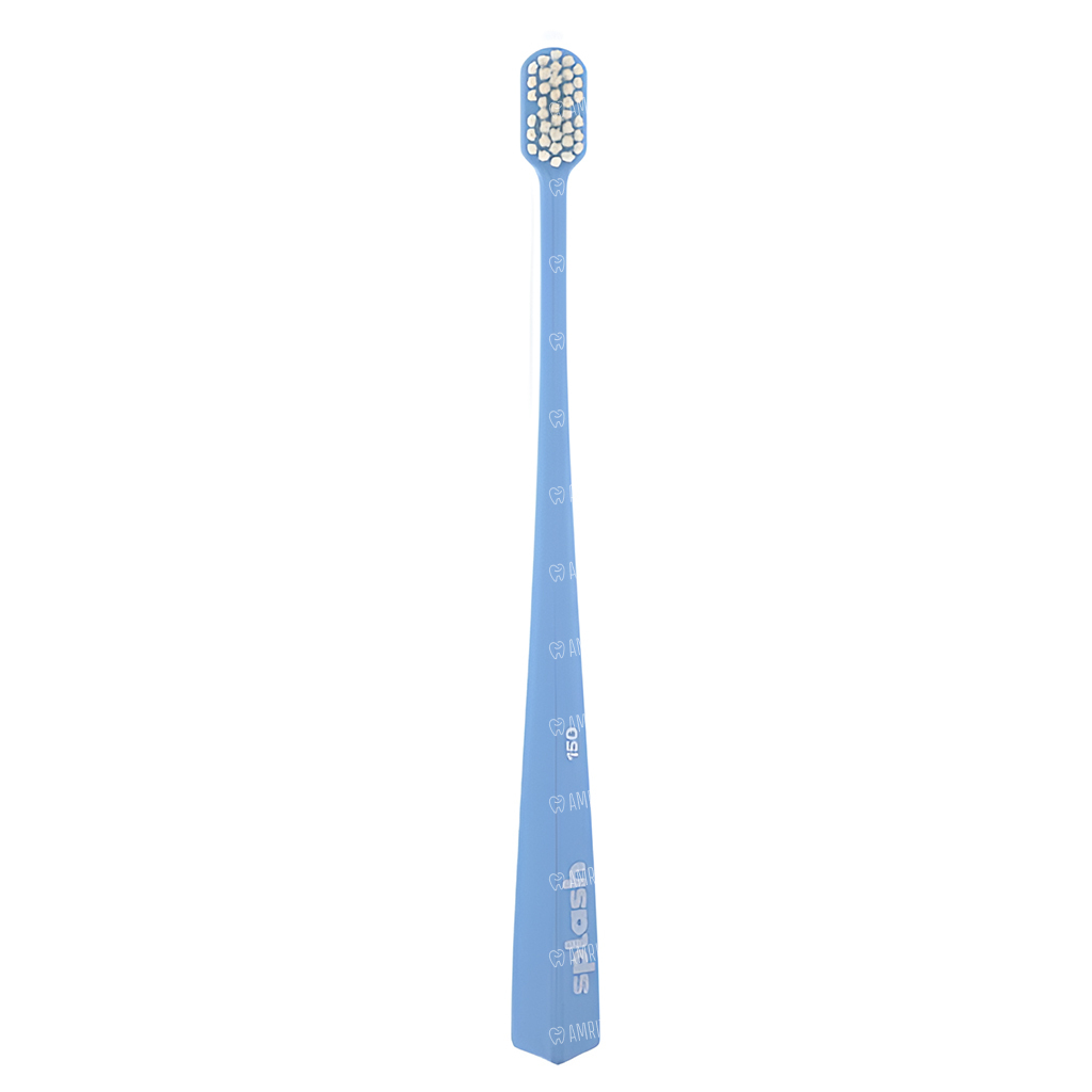 Зубная щетка Splash brush 150 голубого цвета с мягкой щетиной, диаметром щетинок 0,15 мм, предназначена для очистки зубов, брекетов и имплантатов. Щетка достает до всех участков зуба, включая заднюю стенку.