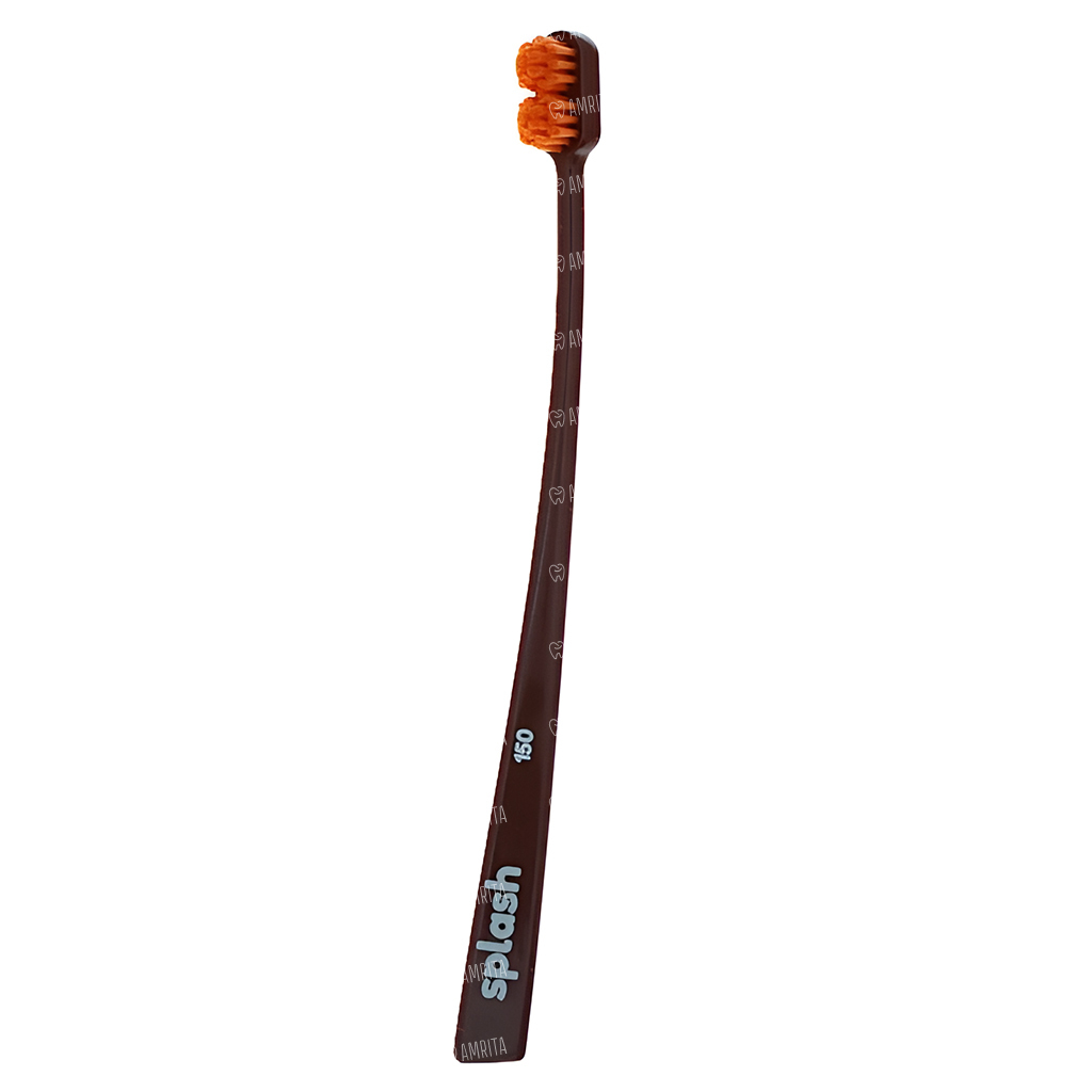 Зубная щетка Splash brush 150 коричневого цвета с мягкой щетиной, диаметром щетинок 0,15 мм, предназначена для очистки зубов, брекетов и имплантатов. Щетка достает до всех участков зуба, включая заднюю стенку.