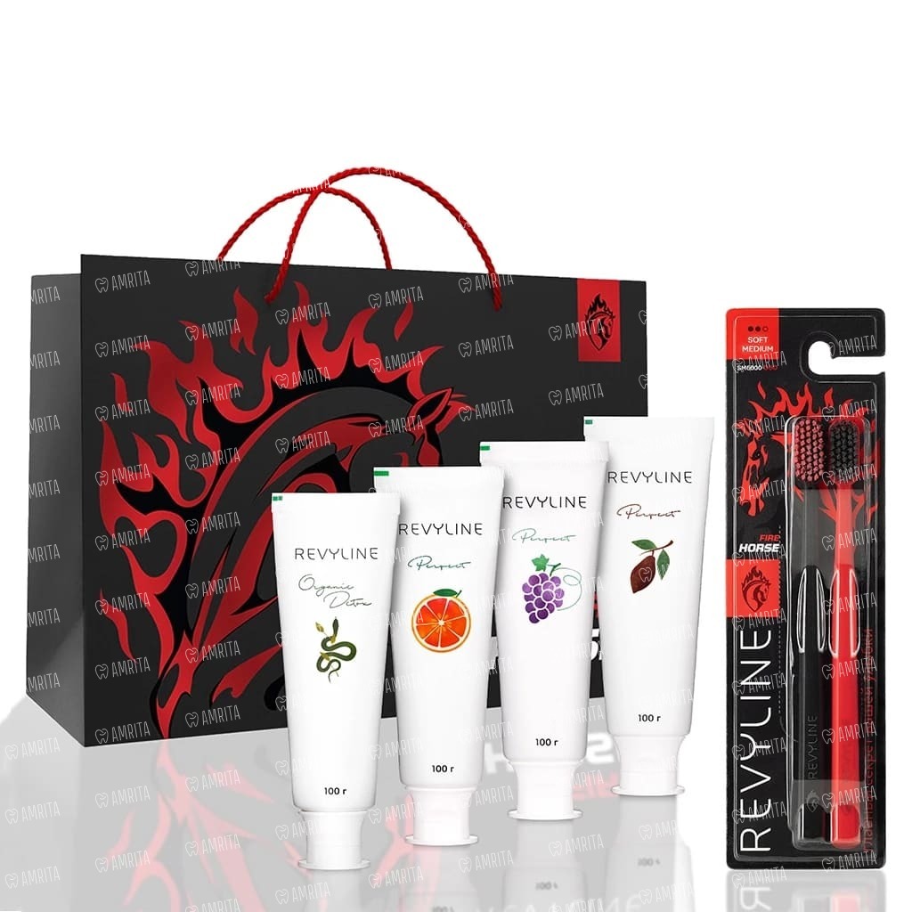 Подарочный набор Revyline №1 Special Color Edition Fire Horse, зубная паста 4 шт+зубная щетка 2 шт