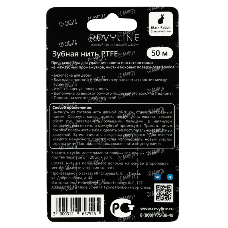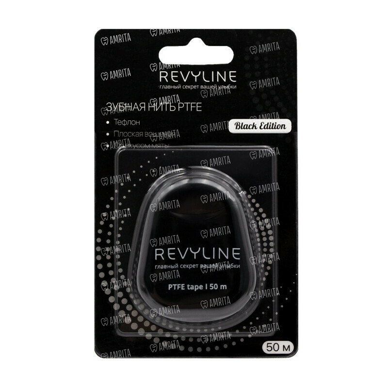 Зубная нить Revyline PTFE Black Edition, вощеная, мятная, 50 м