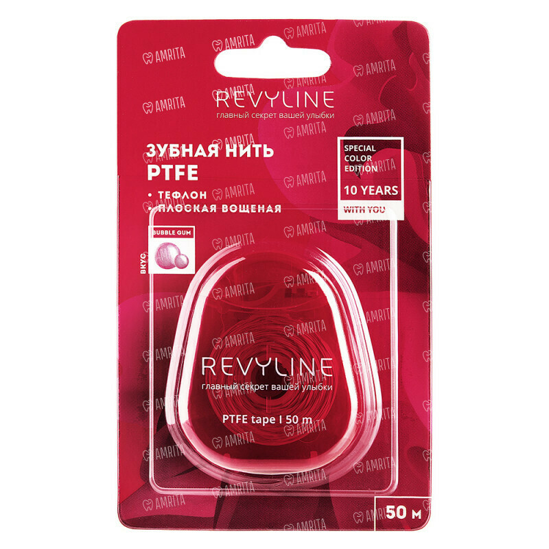 Зубная нить Revyline PTFE Special Color Edition Magenta, тефлон, красный, 50 м