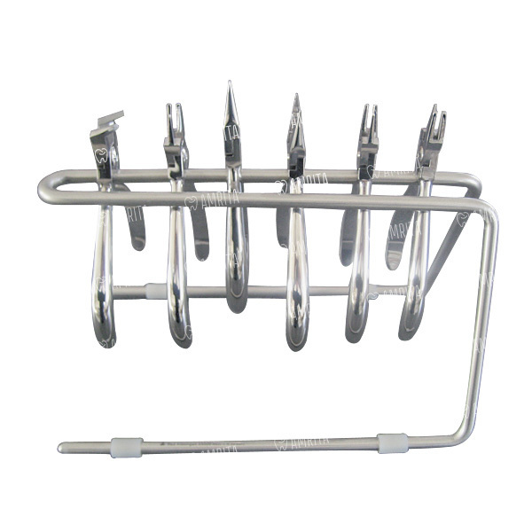 Металлическая подставка для хранения ортодонтических щипцов. Изготовлена из металической дуги широкого диаметра и имеет возможность удерживать щипцы в вертикальном положении по всей ширине.