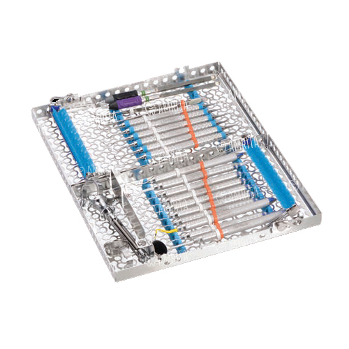 Мягкие силиконовые вставки надежно закрепляют инструменты, предотвращая их выпадение и повреждение. Решетчатая поверхность гарантирует максимальную очистку и стерилизацию инструментов.