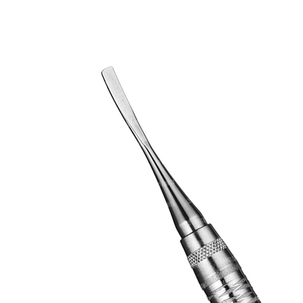 - Две разные по форме остро заточенные рабочие части шириной всего 3 мм легко и эффективно приподнимают надкостницу, контурируют и формируют кость в непосредственной близости от места расположения корня.