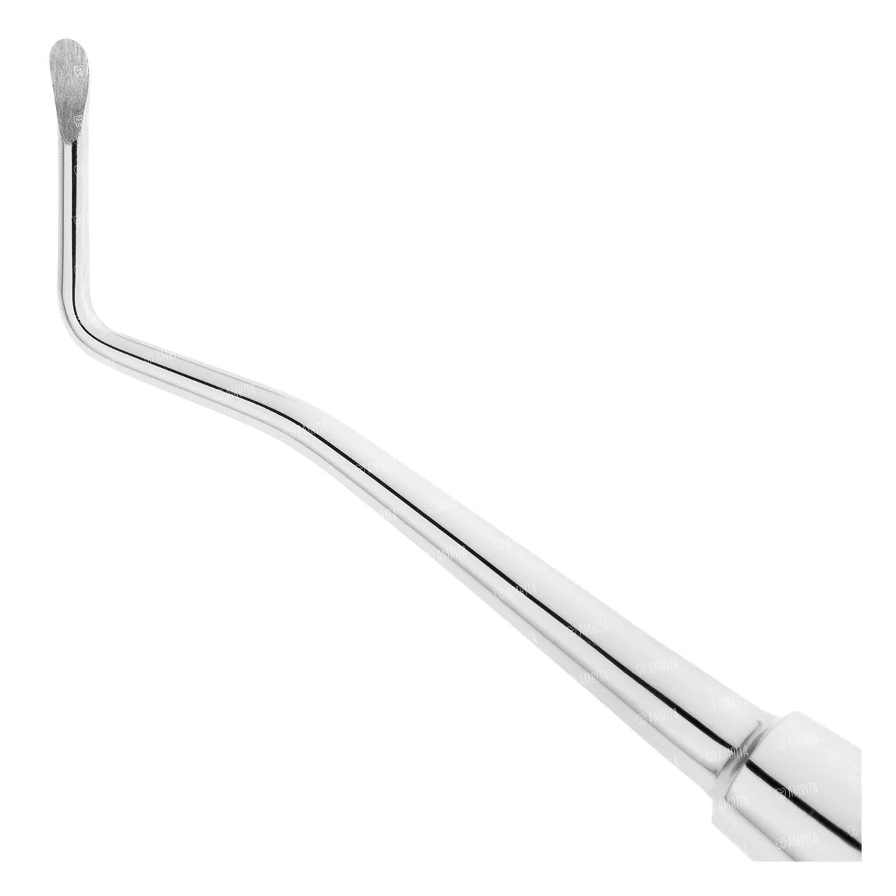 Экскаватор овальный, HLW (Германия) предназначен для извлечения из кариозной полости размягченного дентина, очистки эмали, снятия временного пломбировочного материала и удаления из полостей зуба фрагментов пищи и мягкого налета. Двусторонний экскаватор представляет собой держатель в виде стержня с двумя остро заточенными овальными ложечками, расположенными с противоположных концов. Рабочая часть ложечек развернута в разные стороны. Такая конструкция инструмента позволяет атравматично извлекать размягченные ткани зуба из кариозной полости.Изгибы по плоскости в области функциональных стержней инструмента способствуют адаптации экскаватора к кариозным полостям при очистки от мягкого дентина.На внешнюю поверхность рукоятки экскаватора с обоих концов нанесены ретенционные насечки, предотвращающие скольжение фаланг пальцев в перчатке и снижающие нагрузку на руку.