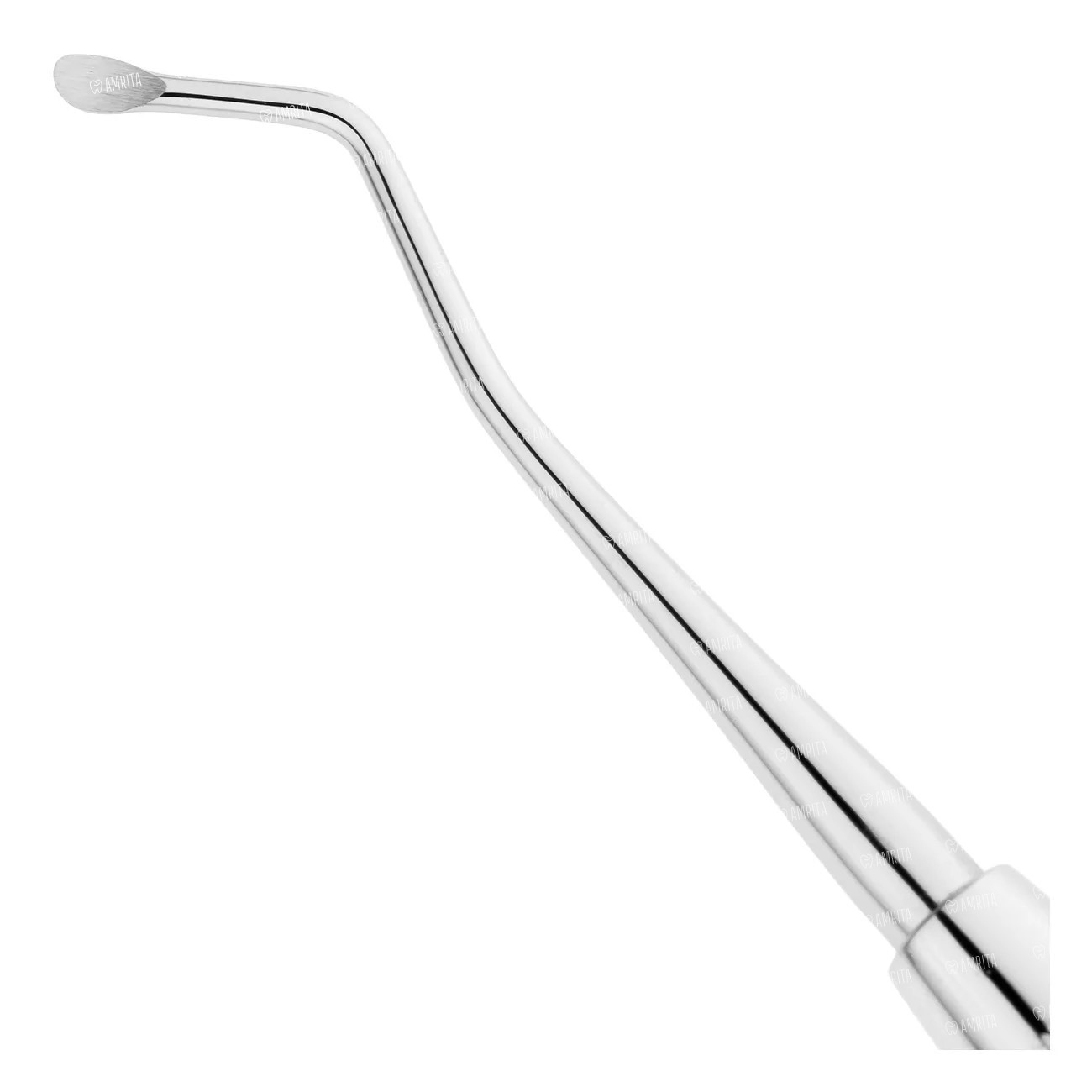 Экскаватор овальный, HLW (Германия) предназначен для извлечения из кариозной полости размягченного дентина, очистки эмали, снятия временного пломбировочного материала и удаления из полостей зуба фрагментов пищи и мягкого налета. Двусторонний экскаватор представляет собой держатель в виде стержня с двумя остро заточенными овальными ложечками, расположенными с противоположных концов. Рабочая часть ложечек развернута в разные стороны. Такая конструкция инструмента позволяет атравматично извлекать размягченные ткани зуба из кариозной полости.Изгибы по плоскости в области функциональных стержней инструмента способствуют адаптации экскаватора к кариозным полостям при очистки от мягкого дентина.На внешнюю поверхность рукоятки экскаватора с обоих концов нанесены ретенционные насечки, предотвращающие скольжение фаланг пальцев в перчатке и снижающие нагрузку на руку.