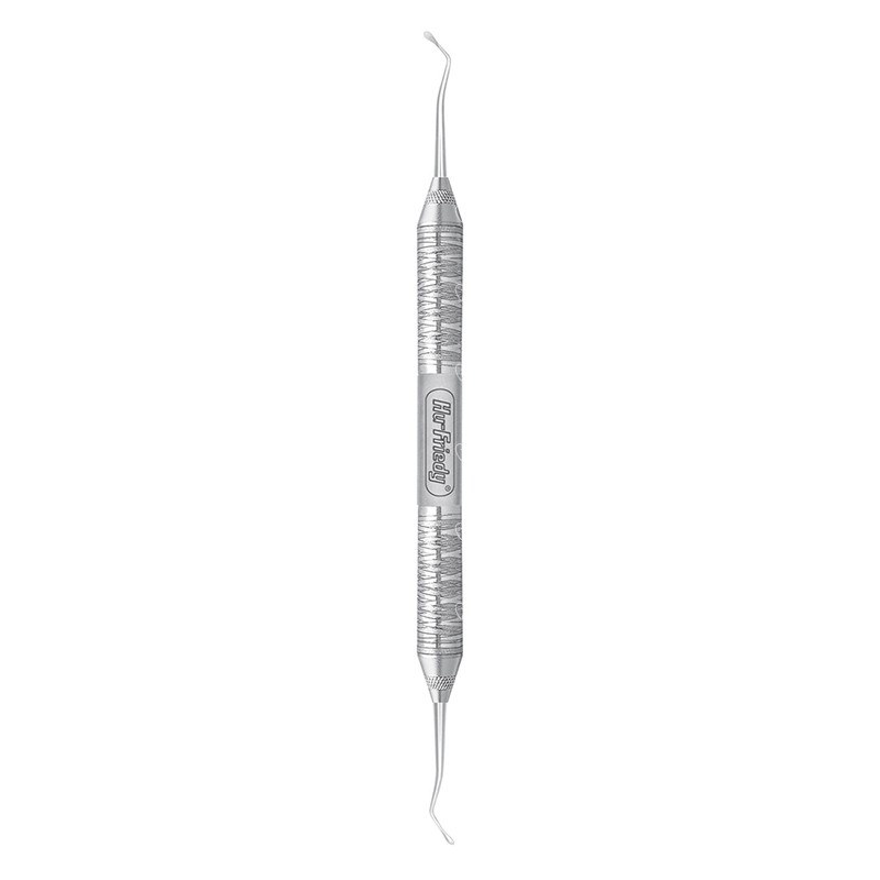 Двусторонний экскаватор с овальной ложкой и утяжеленной ручкой незаменим в работе на сложных кариозных полостях. Форма и размер рабочей части позволяют проникать в самые труднодоступные места зубного ряда: пародонтальные карманы, межзубные пространства.