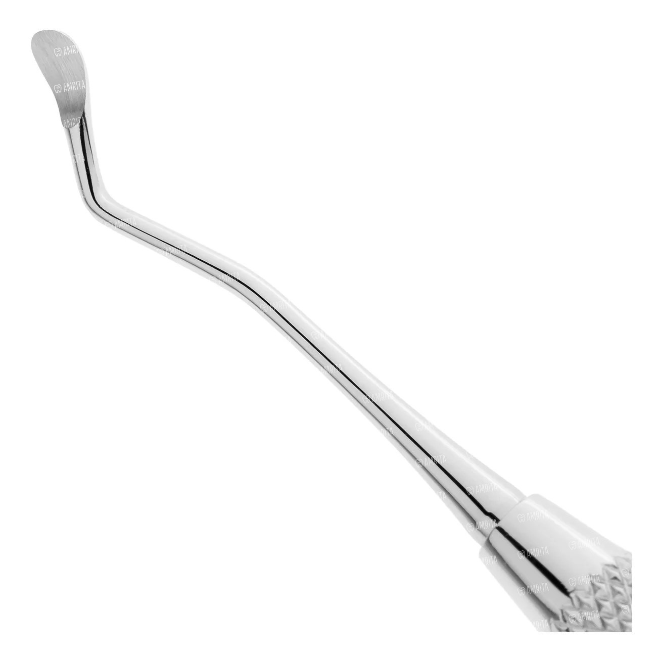 Функциональные стержни инструмента имеют изгибы по плоскости, что способствует введению экскаватора в глубокие и труднодоступные участки полости рта.
